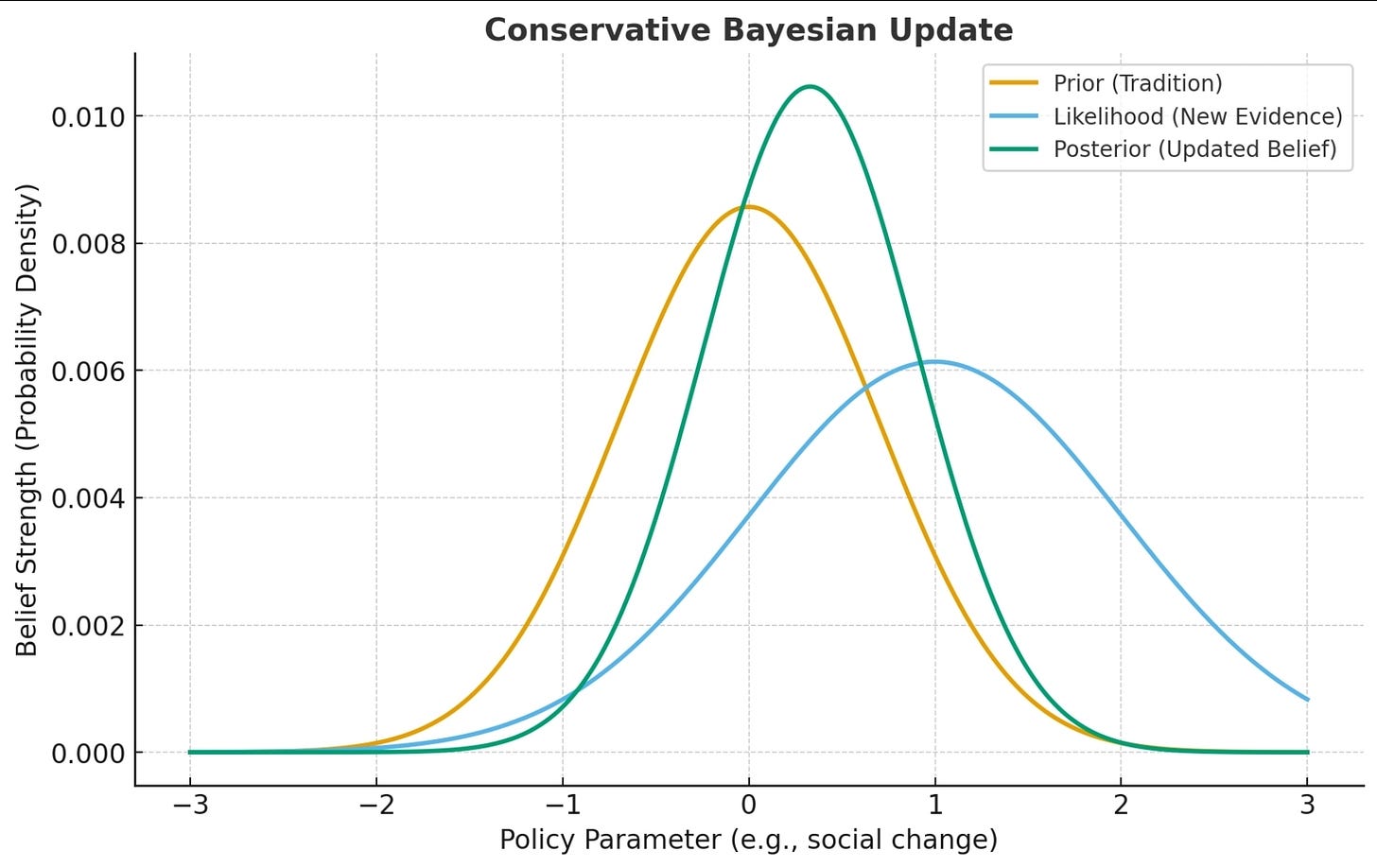 Bayes law has long been used in Artificial Intelligence research to formalize how beliefs can be formally modeled as more informatiom is added to update a model. It also works surprising well to conceptualize political beliefs. Why do conservatives cling to tradition, postmodernists rip up every story, libertarians treat freedom like gravity, Marxists see class struggle everywhere, and centrists try to balance it all?